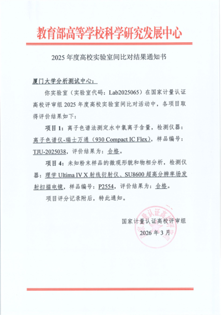 厦门大学分析测试中心在2025年度高校实验室间比对中荣获佳绩